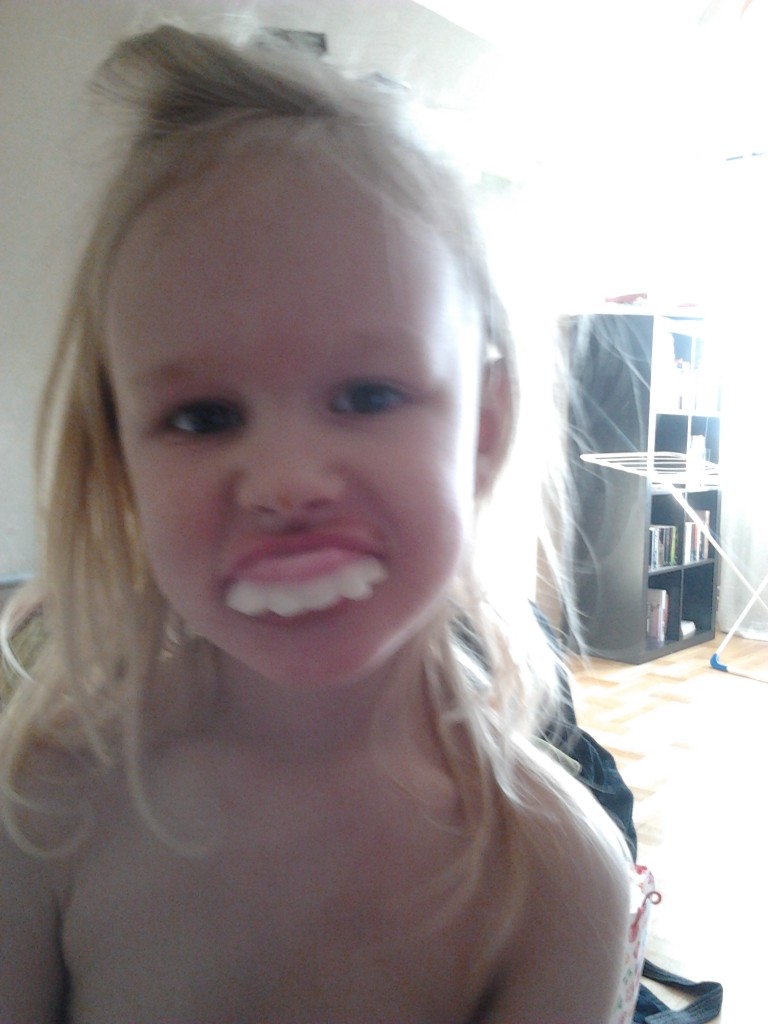 Lovisa knasade sig igår med sitt godis. Hon har kommit på en godisstrategi. Hon köper bara lite grann och först tyckte jag det var konstigt eftersom hon ä l s k a r godis, men sen kom jag på att hon tuggar i sig allt Victors godis också.