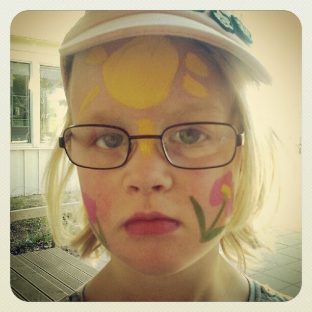 Lovisa var fin i ansiktsmålning när jag hämtade på dagis, trots den buttra uppsynen så var hon glad.
