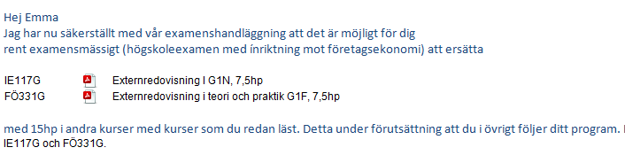 Dagens bästa besked fick jag när jag öppnade mailen. Jag har ju tyckt att kurserna med externredovisning har varit dödens tråkiga. Jag kan inte motivera mig ens lite grann till att plugga ordentligt. Jag klarar av löpande bokföring, hur man ska fixa med skatt, moms och gör diverse budgetar. För min del känner jag att det räcker. Jag vet inte varför jag ska kunna göra bokslut för aktiebolag eller räkna ut diverse värden på nyemissioner. Därför mailade jag en studievägledare förra veckan och frågade om jag helt enkelt kunde ditcha de kurserna och ändå få min examen genom att jag plockar in några av de kurser jag läst tidigare. Svaret jag fick var att det gick bra och att jag kommer få en högskoleexamen i företagsekonomi förutsatt att jag fixar övriga kurser. LÄTTNAD! Nu kan jag lägga fokus på det som är roligt och intressant och skulle jag någon gång vilja fixa det andra så kan jag ju göra det också.